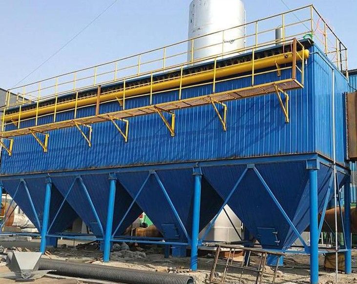 GA型大氣清灰袋式除塵器由進出口煙道、除塵室、凈氣室、清灰系統(tǒng)及灰斗等組成。該離線脈沖除塵器工作時廢氣溫度降為130℃,瞬間可達180℃的含塵氣體由布袋除塵器中下部的進口煙道分配后進入各室的灰斗,煙氣由于折流和速度降低等原因使得比較粗、比較重的粉塵顆粒得以沉降,達到預(yù)分離的目的。細粉塵隨氣流轉(zhuǎn)折向上進入離線脈沖除塵器的除塵室,由于離線脈沖除塵器濾袋的過濾作用,粉塵被阻留在濾袋的外表面,過濾后凈氣體由離線脈沖除塵器的濾袋內(nèi)部進入各單元的凈氣室,并匯合于出口煙道"經(jīng)引風機后通過煙囪排入大氣。